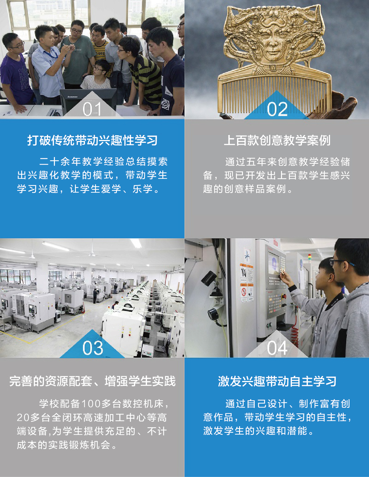 精雕学校依托北京精雕综合资源和二十余年人才培养的实践探索,打破传统教学模式,结合学校独有的资源平台的优势,开创了“学生自创自制个性作品”的教学模式。